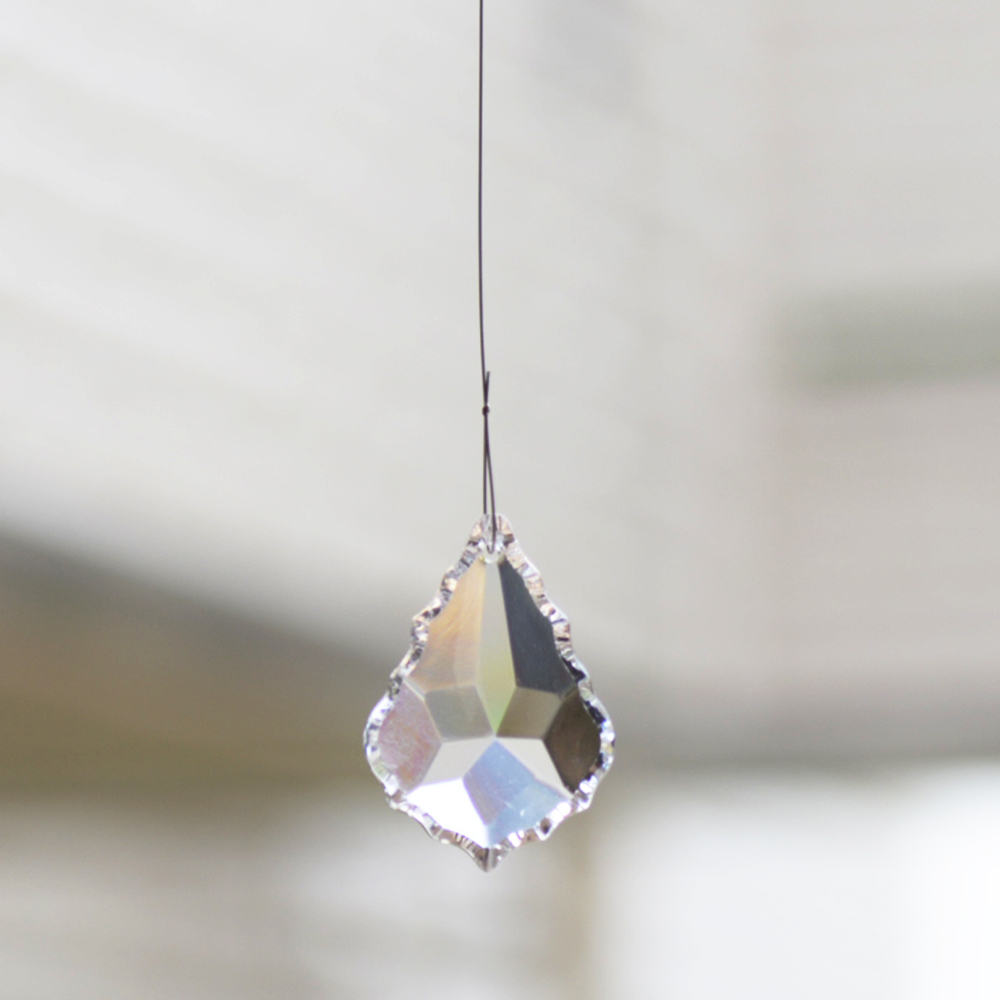 クリスタル製のガラス玉を使いストラップのように作成したものを窓辺など太陽の光が直接当たる場所にぶら下げると、クリスタルで乱反射した光が虹の粒となって部屋に入ってきます。