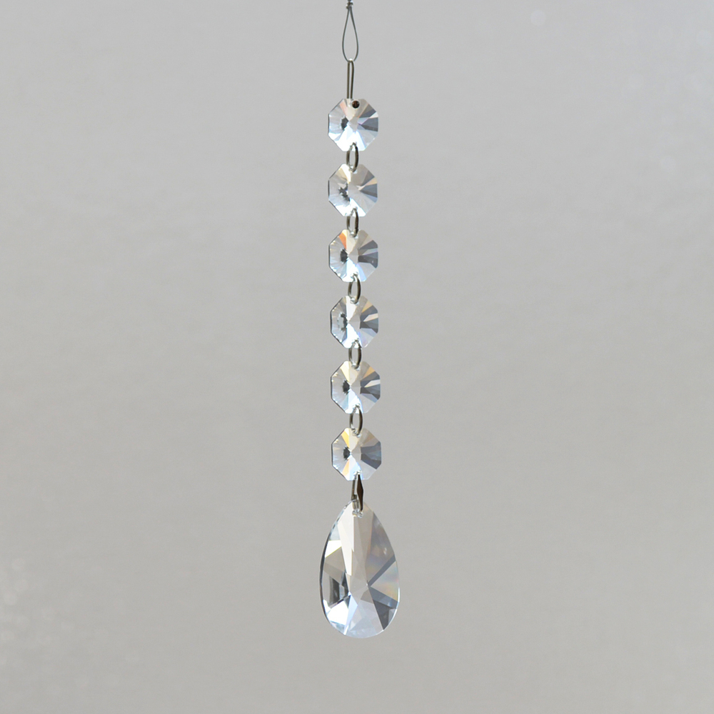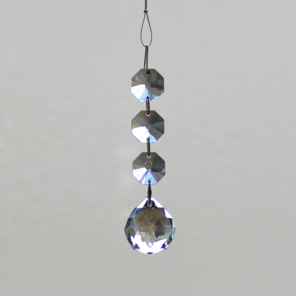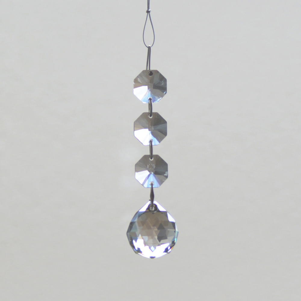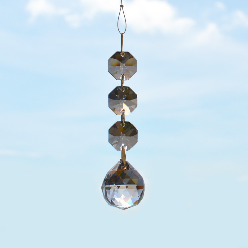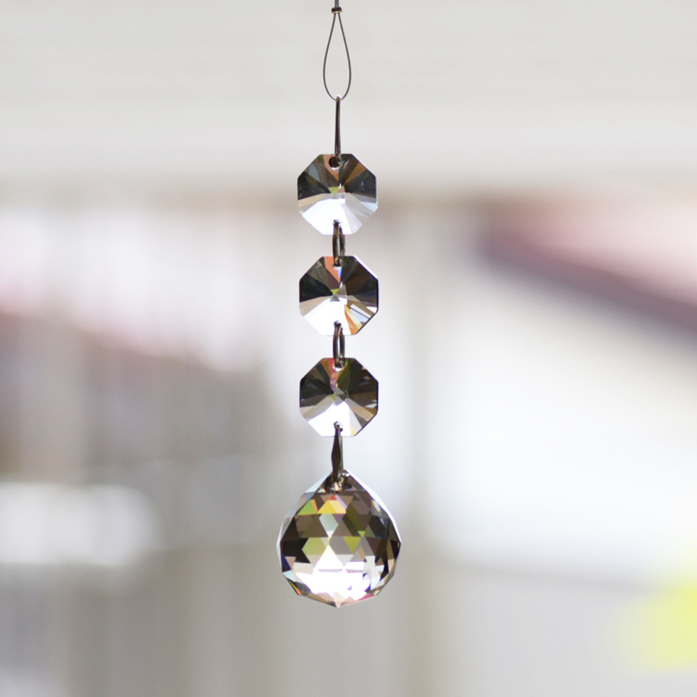 クリスタル製のガラス玉を使いストラップのように作成したものを窓辺など太陽の光が直接当たる場所にぶら下げると、クリスタルで乱反射した光が虹の粒となって部屋に入ってきます。