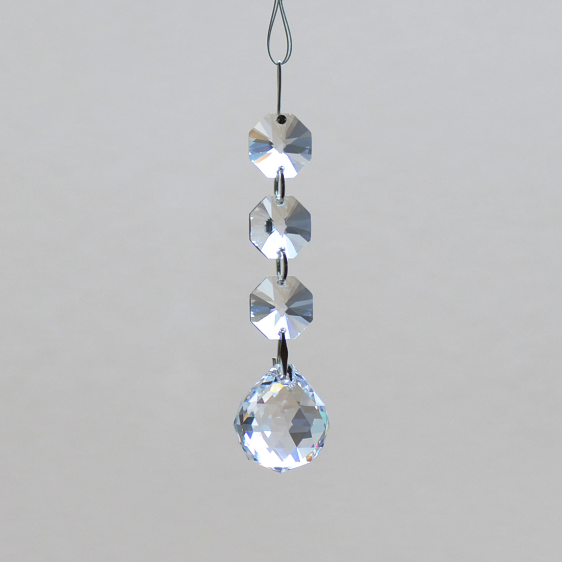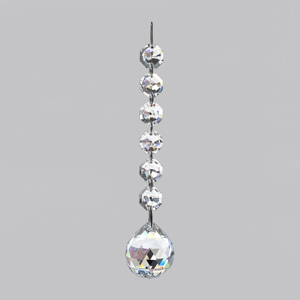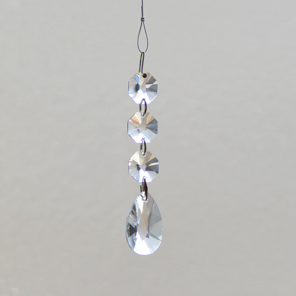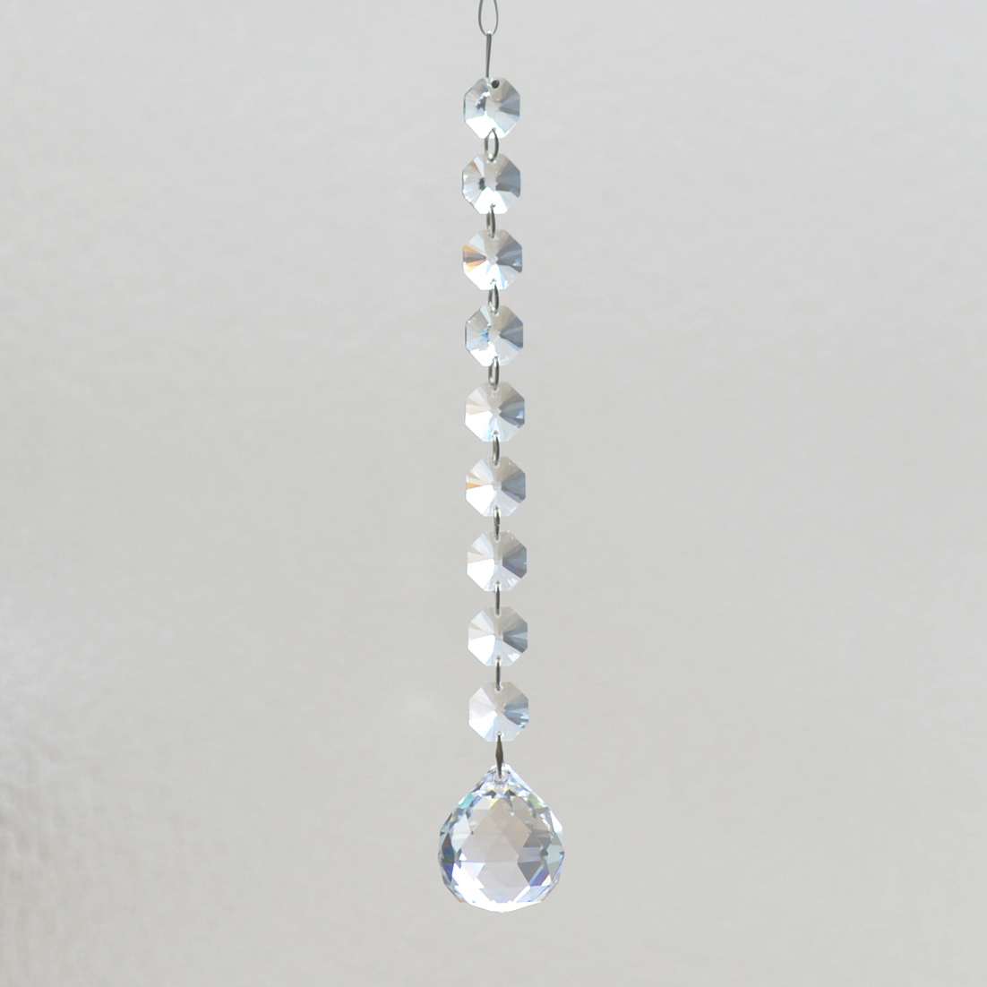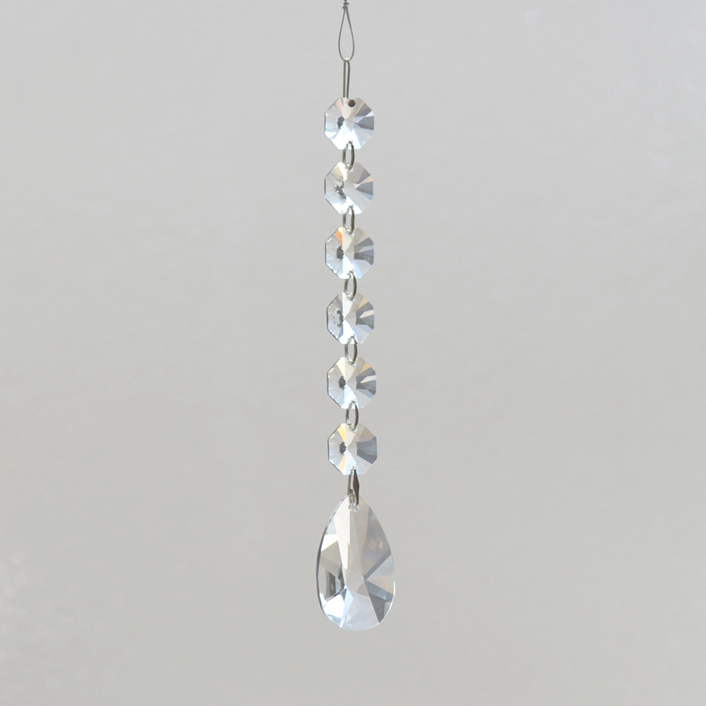 クリスタル製のガラス玉を使いストラップのように作成したものを窓辺など太陽の光が直接当たる場所にぶら下げると、クリスタルで乱反射した光が虹の粒となって部屋に入ってきます。