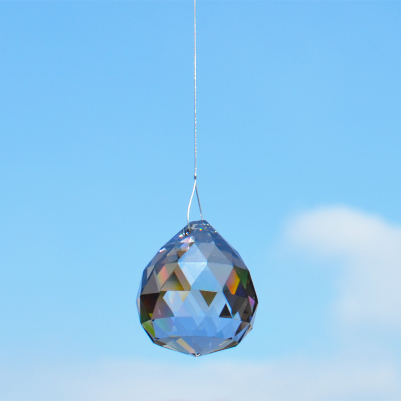 クリスタル製のガラス玉を使いストラップのように作成したものを窓辺など太陽の光が直接当たる場所にぶら下げると、クリスタルで乱反射した光が虹の粒となって部屋に入ってきます。