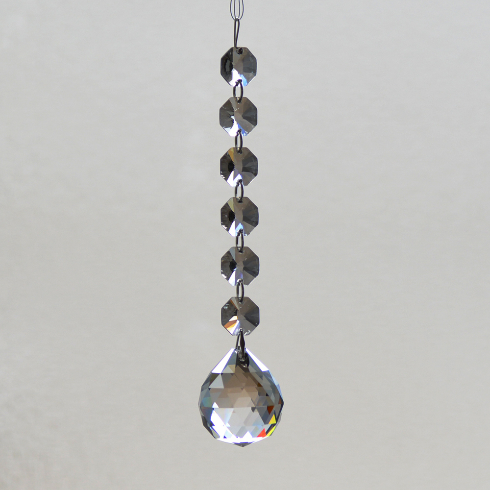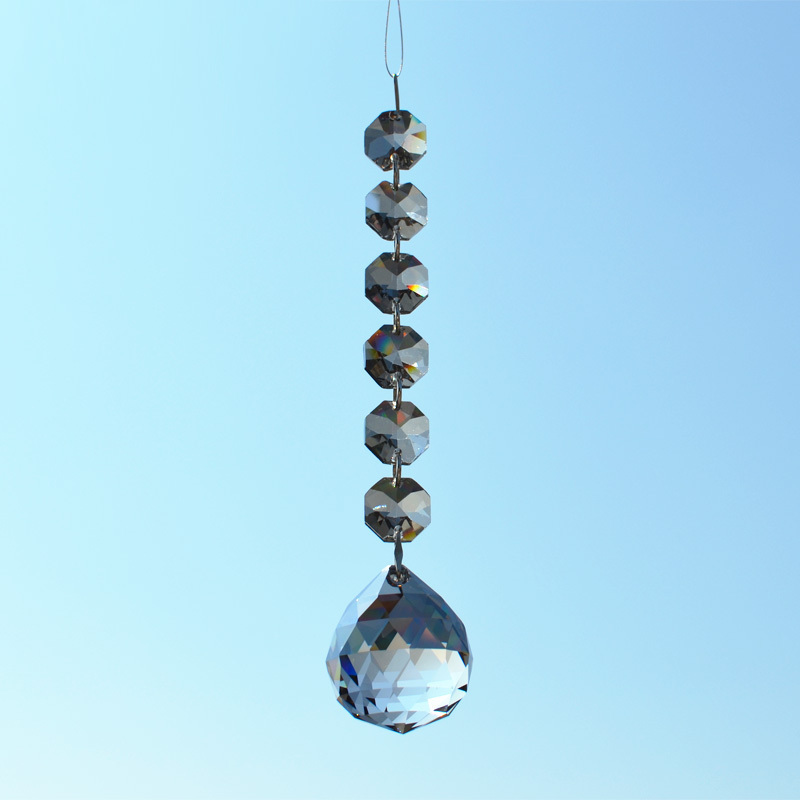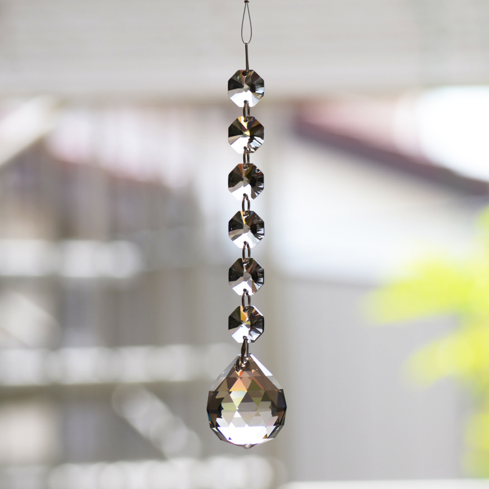 クリスタル製のガラス玉を使いストラップのように作成したものを窓辺など太陽の光が直接当たる場所にぶら下げると、クリスタルで乱反射した光が虹の粒となって部屋に入ってきます。