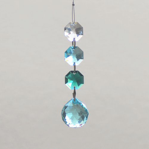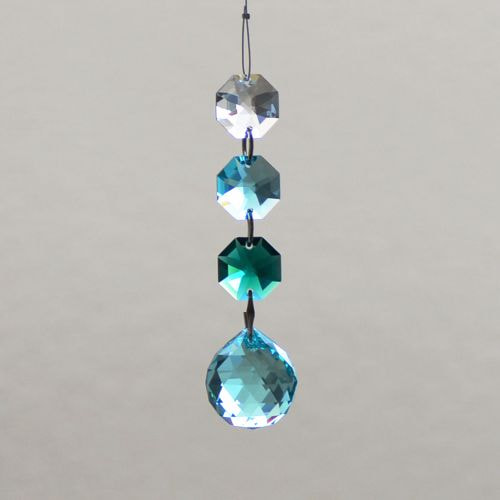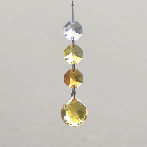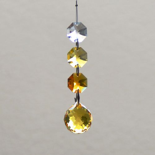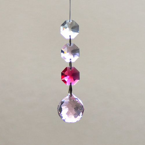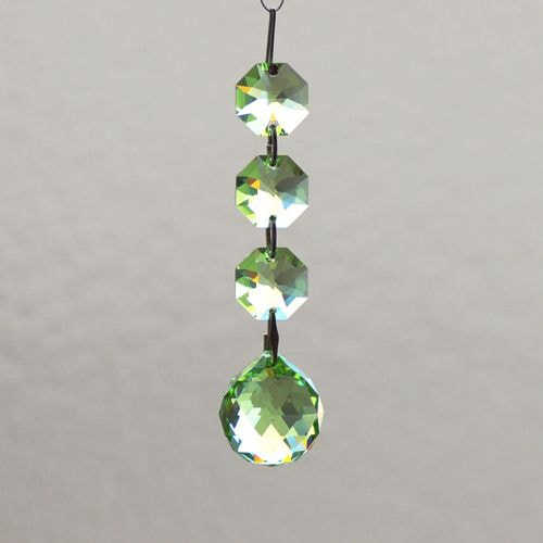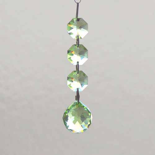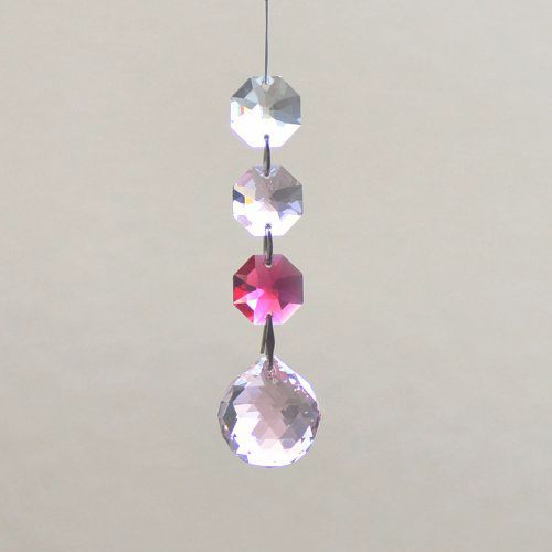 クリスタル製のガラス玉を使いストラップのように作成したものを窓辺など太陽の光が直接当たる場所にぶら下げると、クリスタルで乱反射した光が虹の粒となって部屋に入ってきます。