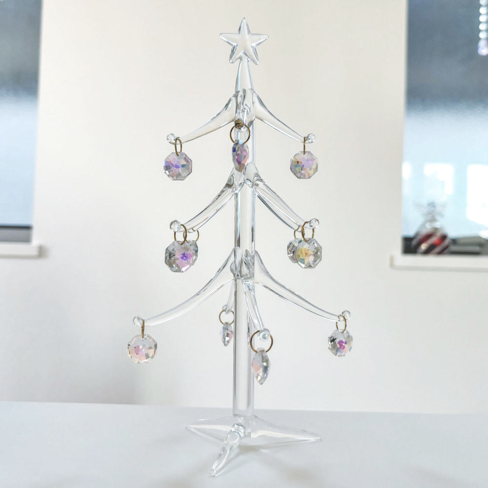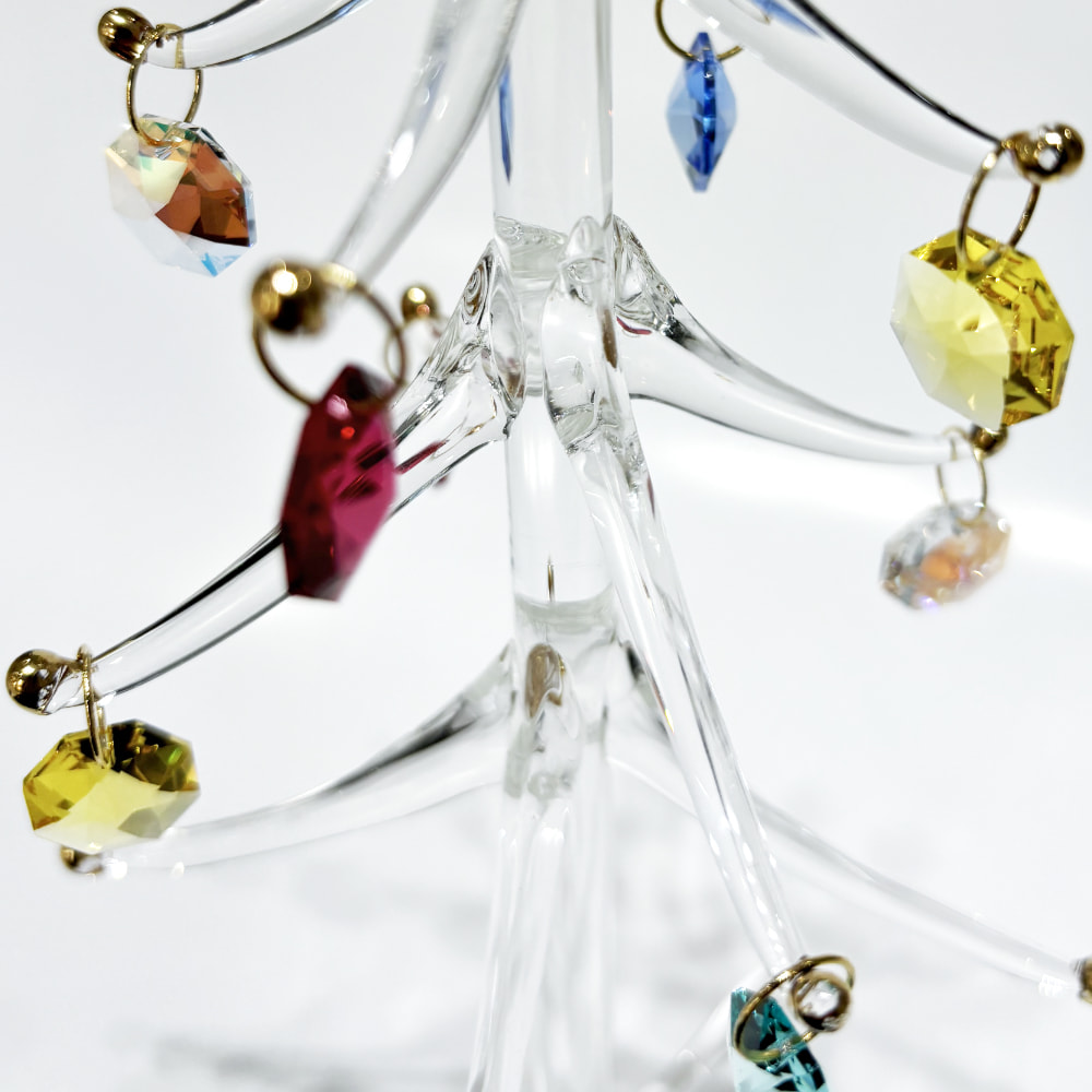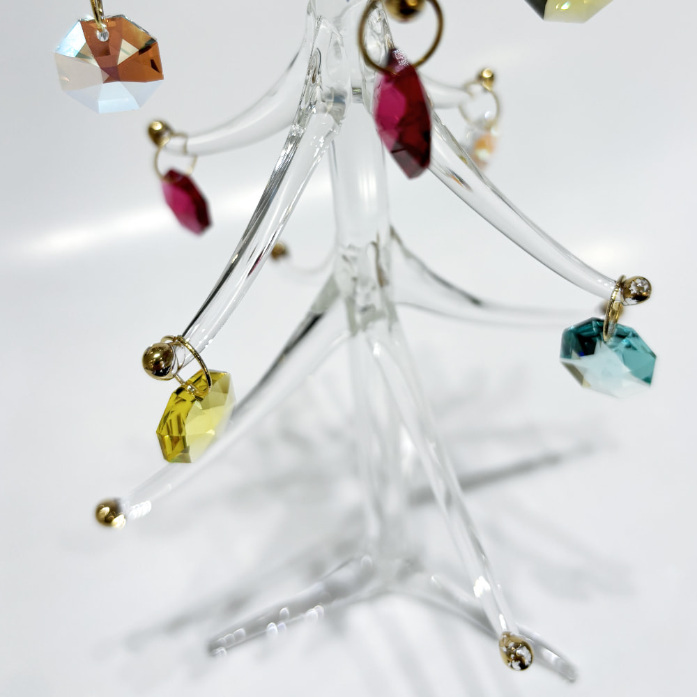 丸カンをクリスタルに取り付けて、ツリーの枝に飾り付けてください。