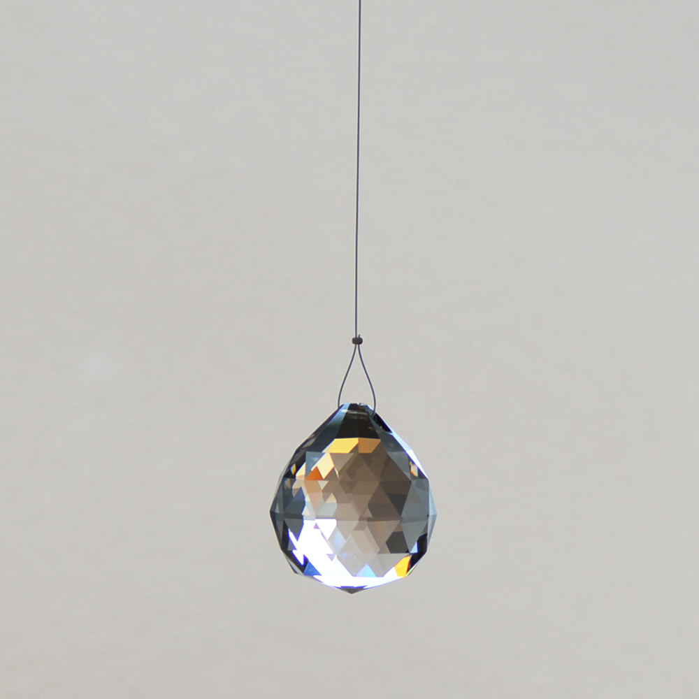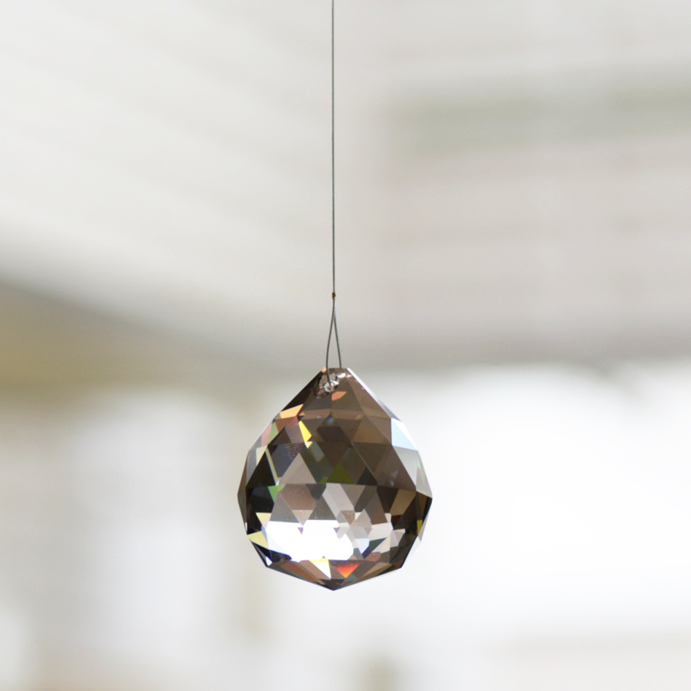 クリスタル製のガラス玉を使いストラップのように作成したものを窓辺など太陽の光が直接当たる場所にぶら下げると、クリスタルで乱反射した光が虹の粒となって部屋に入ってきます。