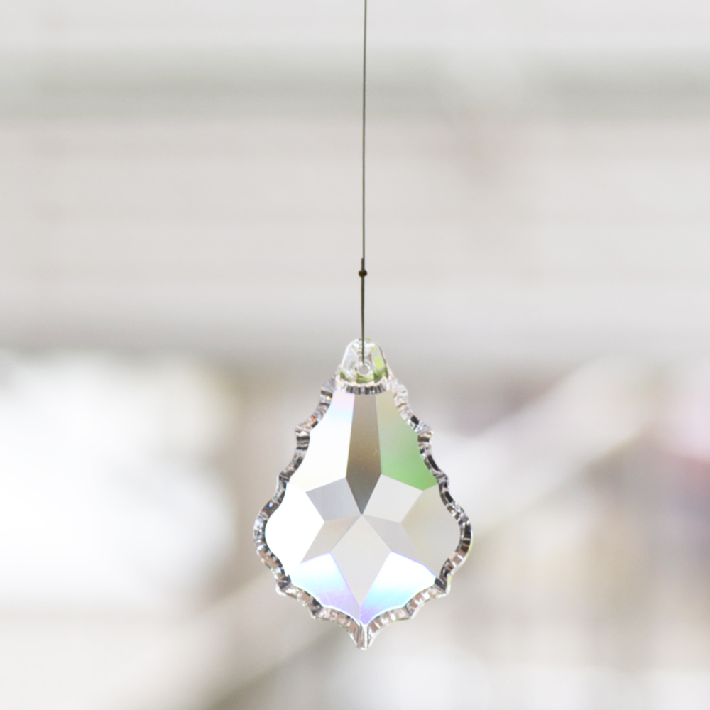 クリスタル製のガラス玉を使いストラップのように作成したものを窓辺など太陽の光が直接当たる場所にぶら下げると、クリスタルで乱反射した光が虹の粒となって部屋に入ってきます。
