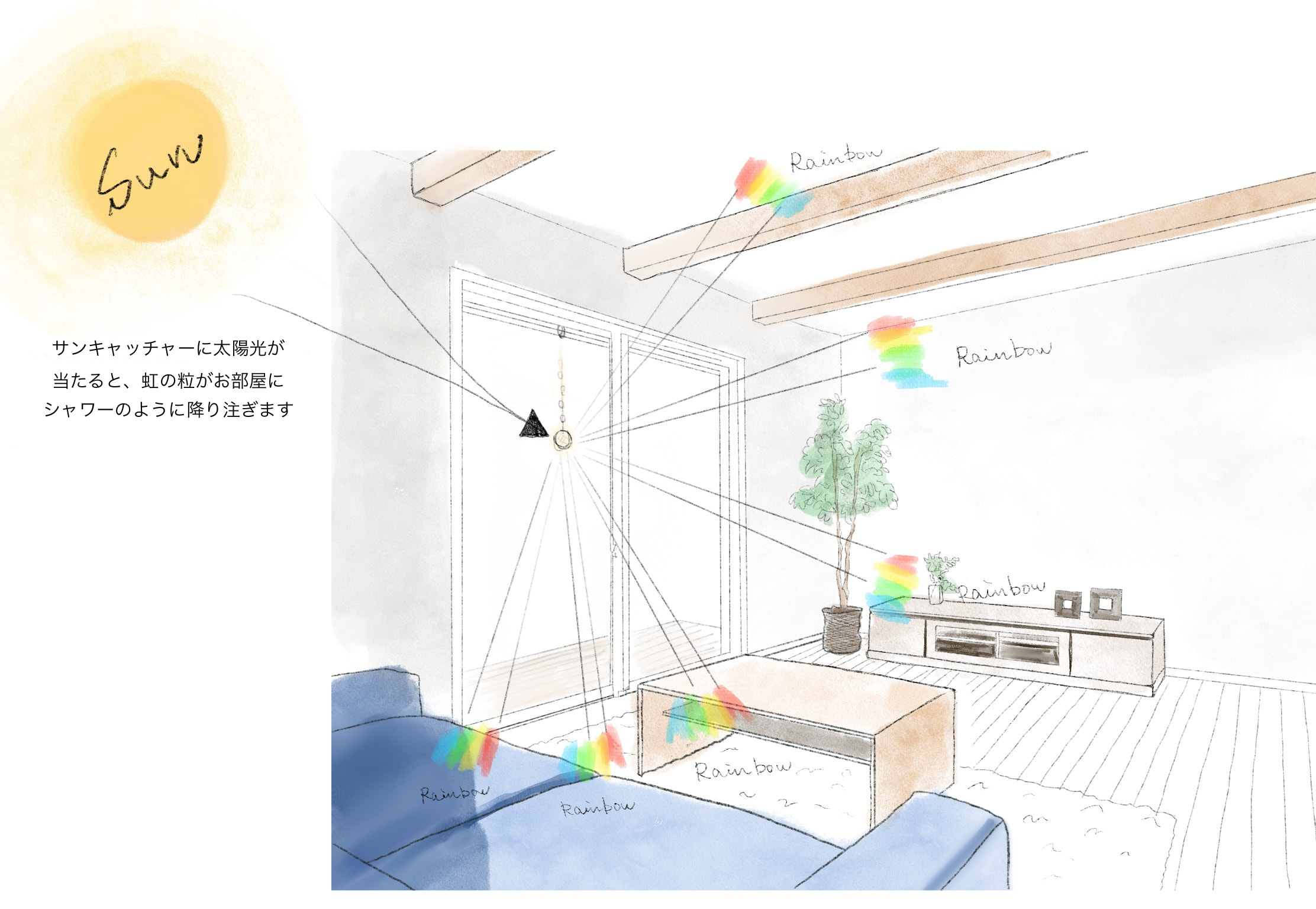 光を掴む』という意味のサンキャッチャーは、別名「レインボーメーカー」とも呼ばれるインテリアアクセサリーです。